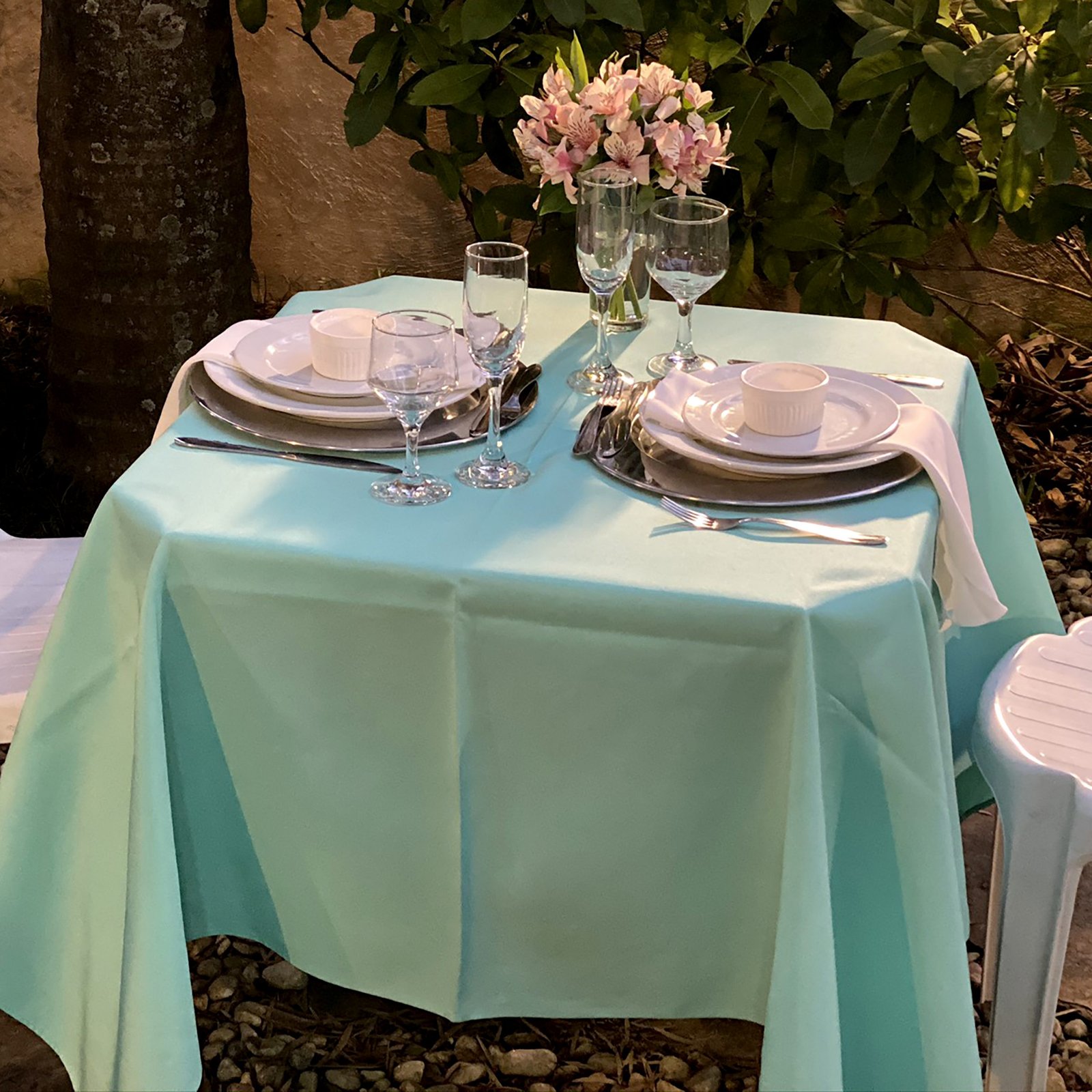 1 mesa plástica branca 0,70 x 0,70 cm